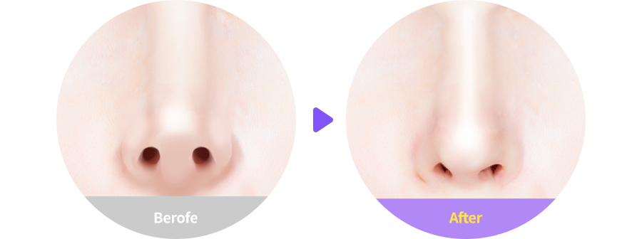 콧대가 날렵하다고 하더라도 상대적으로 콧볼이 넓으면 콧대가 낮아 보일 수 있습니다. 콧구멍의 모양과 크기를 균형 있게 교정하여 또렷하고 입체적인 윤곽으로 보이도록 합니다.