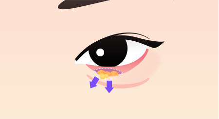 피부가 처져 불룩해진 지방을 제거하거나 재배치하는 수술입니다. 결막 안쪽으로 절개하기 때문에 수술 흉터가 표시나지 않습니다.