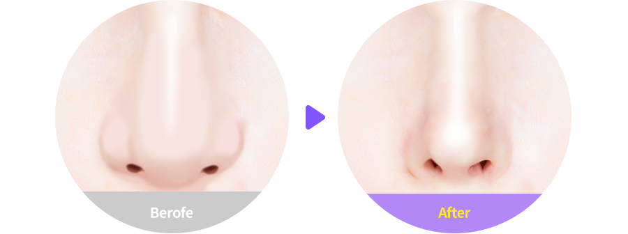 콧볼의 연골이 작고 피부가 두꺼운 경우로 세련되지 못한 인상을 줍니다. 연골을 교정하고 피부밑 지방층을 제거해 슬림하고 오똑한 코끝을 만들어 줍니다.