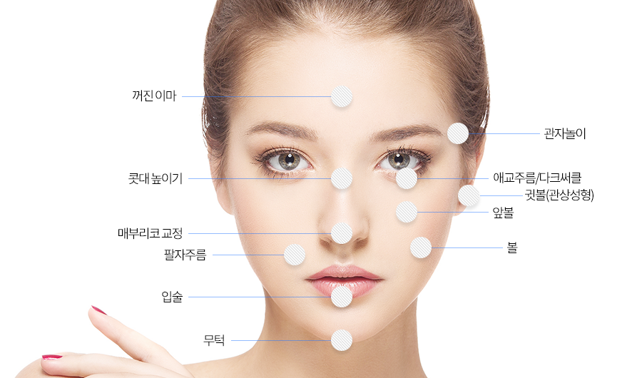 꺼진 이마 콧대 높이기 광대 볼륨 눈밑 애교살 무턱 교정